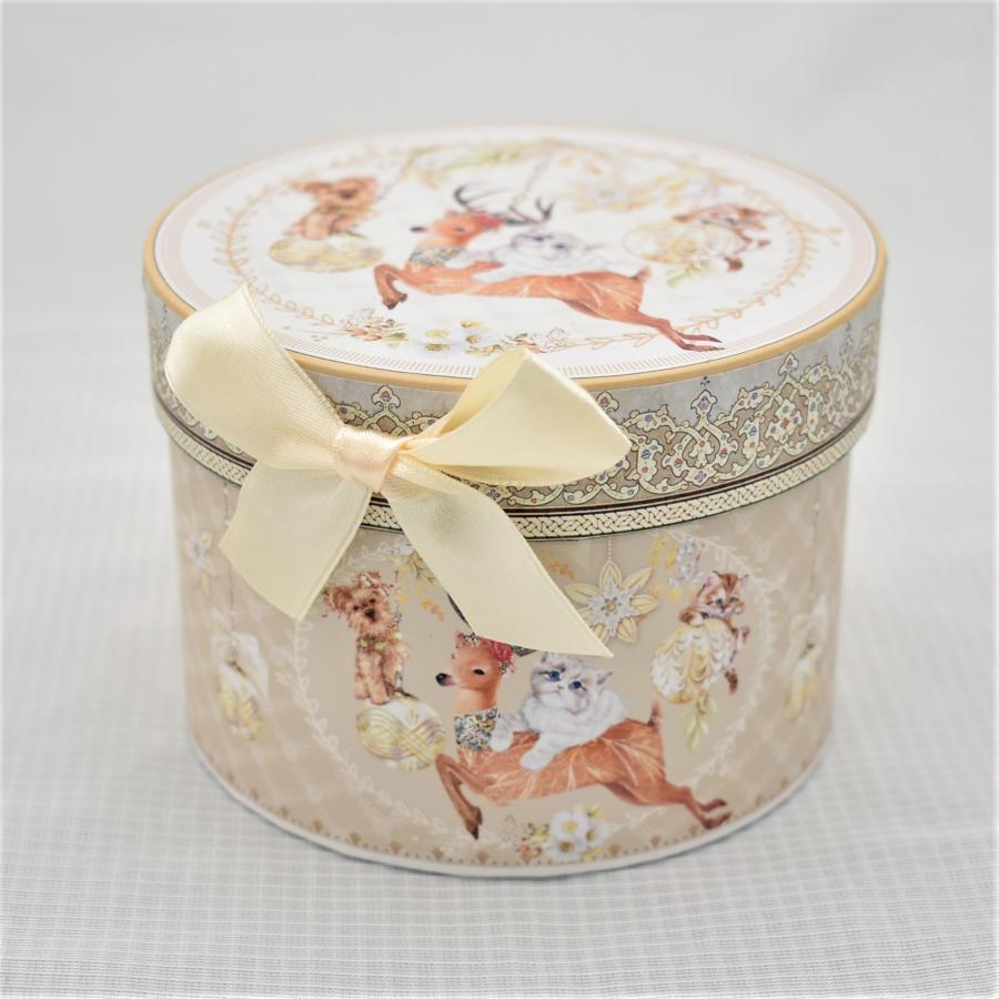 マグカップと同じ柄の手作りのギフトボックスは、キャンディー入れ、小物入れ、三面鏡の横に置いて化粧品入れと様々にお使いいただけます。