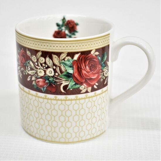 美しいローズ柄が施されたギフトボックス入りのマグカップ。