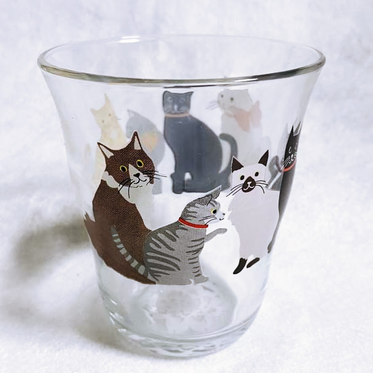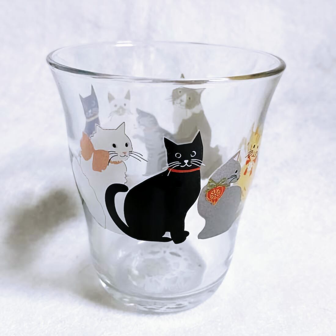 たくさんの猫が描かれた手にフィットするサイズのイタリアーノグラスです。
