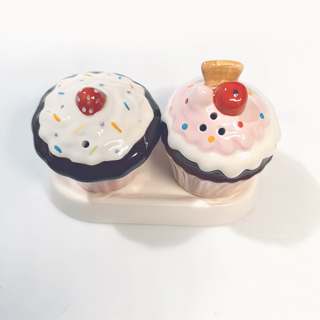 【クリアランス】陶製スイーツ型ソルト&ペッパーセット ピンク 塩コショウ入れ