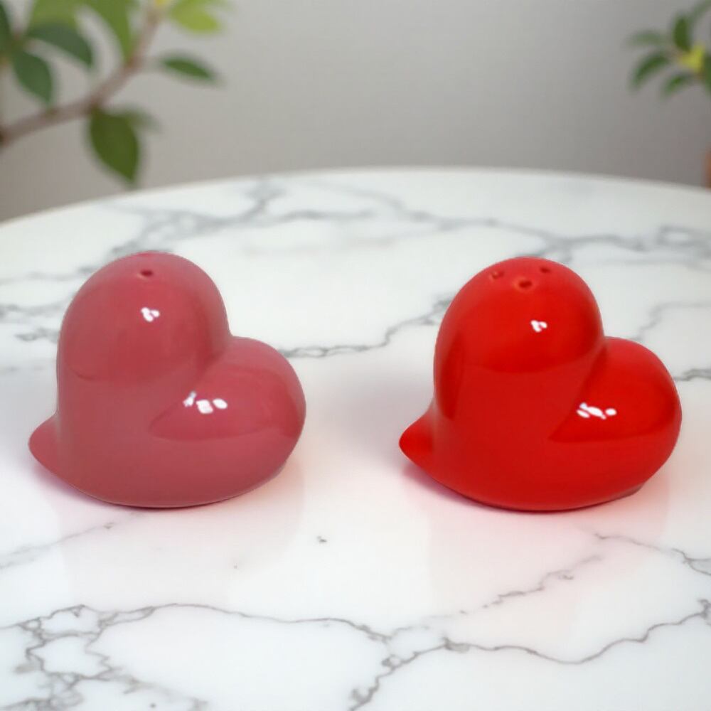 可愛らしいハート型のデザインが特徴のラブリーソルト&ペッパーセット。
