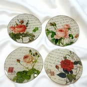 ガラス製ローズコースター4枚セット 90032 バラ 薔薇