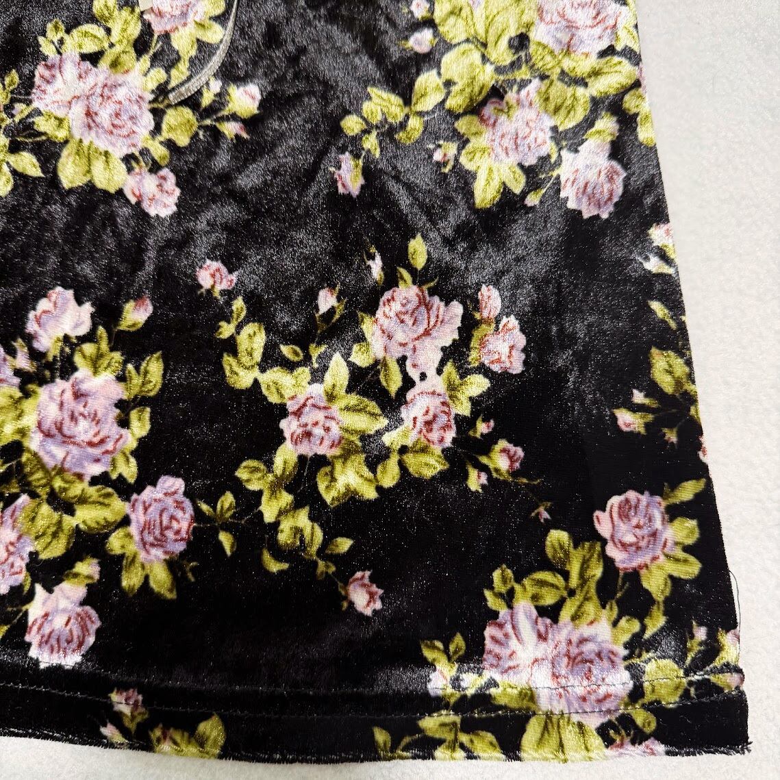 薔薇模様のベロアキャミソール ブラック Mサイズ レース リボン バラ 薔薇