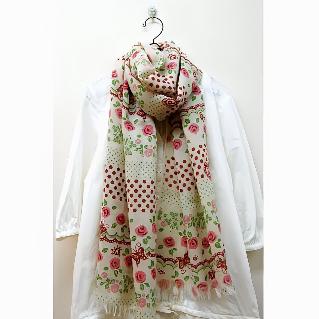 【クリアランス】ウール混ストール ファニーガール オフホワイト 秋冬 薔薇 バラ ローズ