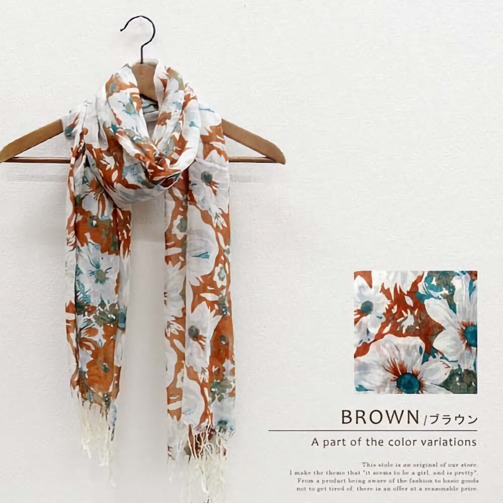 【クリアランス】お花プリントストール ブラウン フラワー 春夏