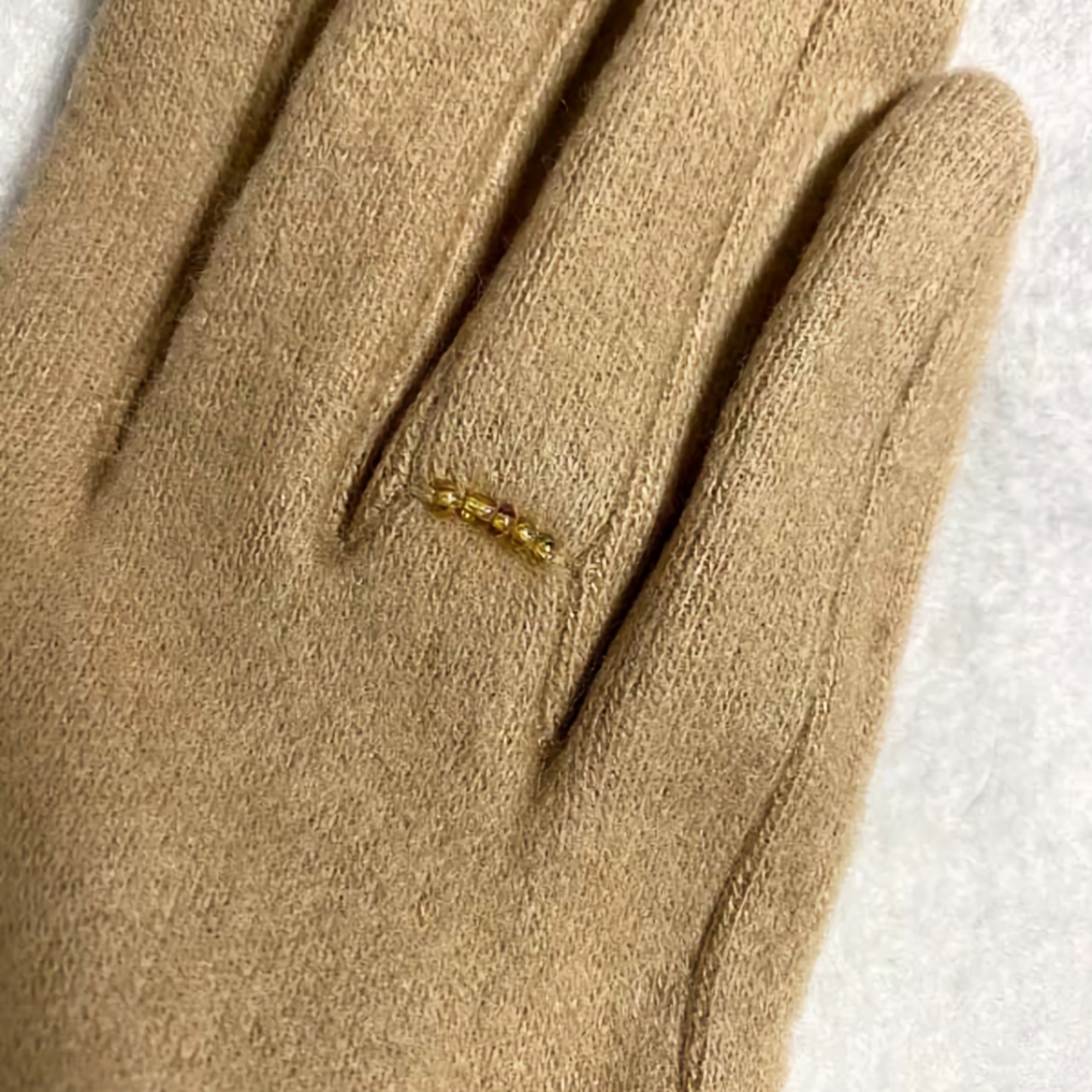 薬指にはビーズのワンポイント入り。