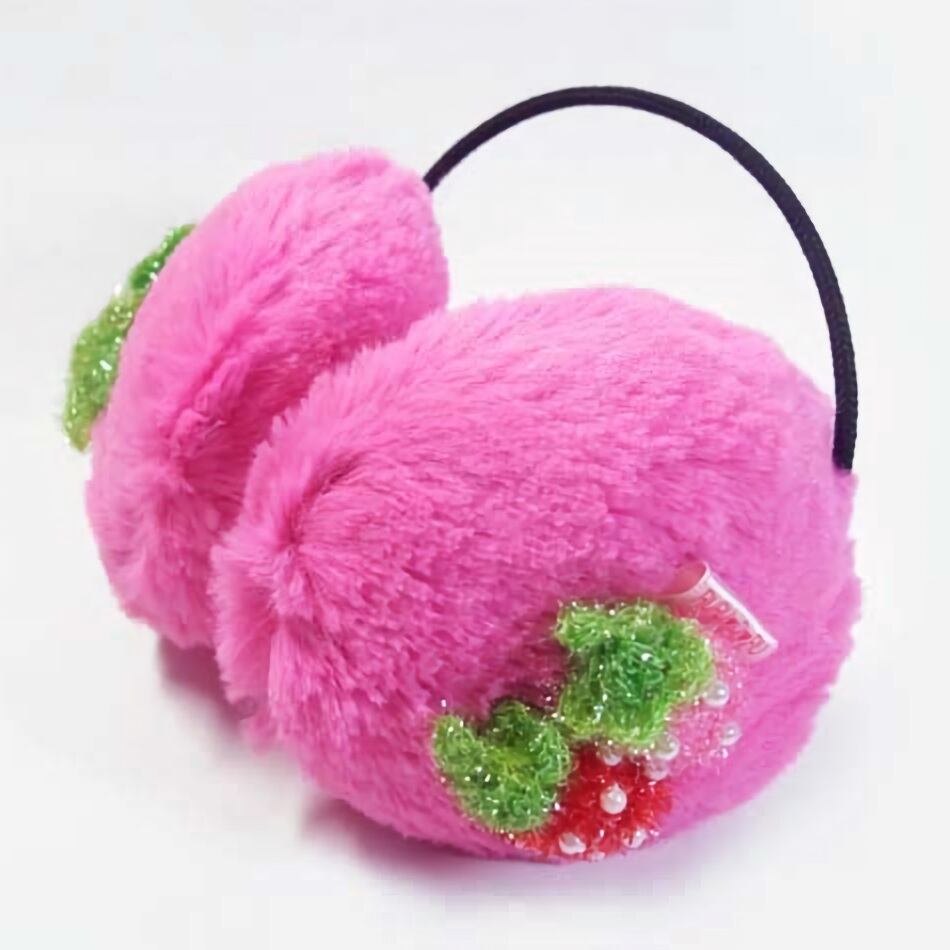 ふわふわの素材に包まれたこのボアイヤーマフは、鮮やかな濃ピンク色と愛らしいイチゴデザインが魅力です。