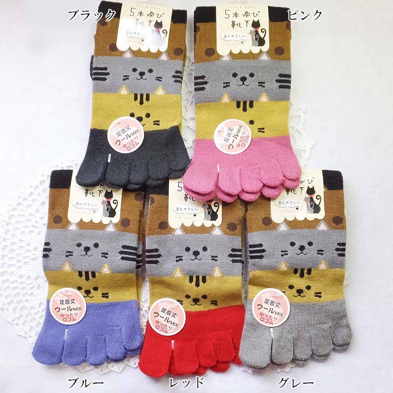 5本指猫プリントソックス 足首丈 G-581 ネコ キャット