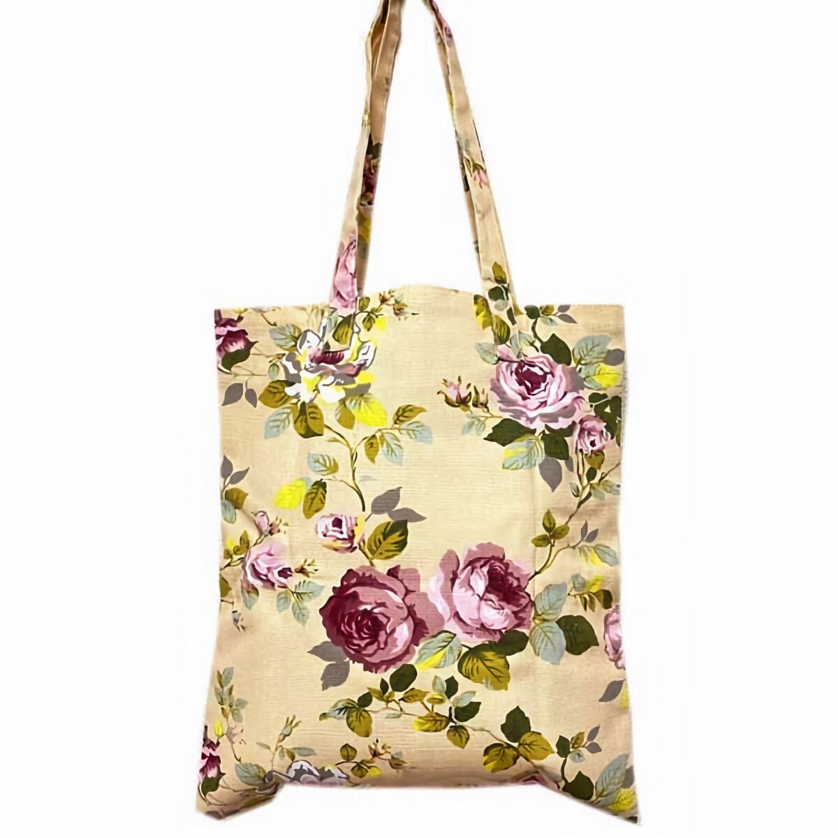 可愛らしいローズ柄が特徴のエコバッグ。