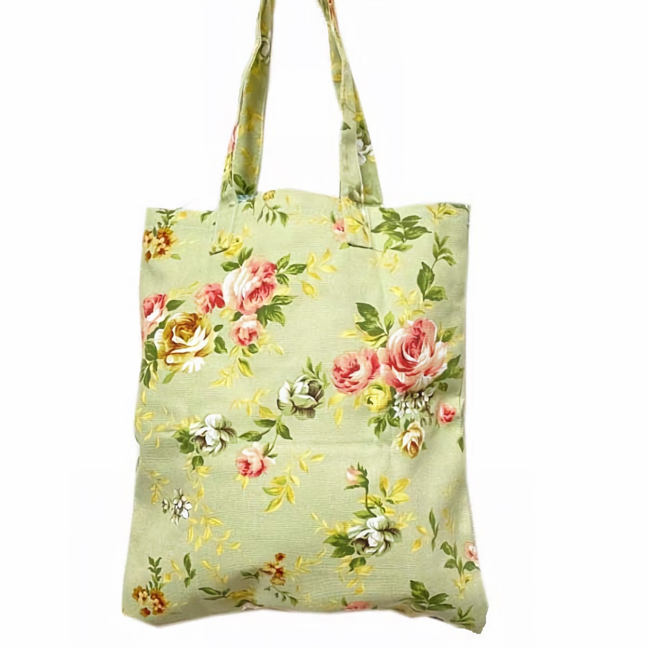 ローズ柄エコバッグ ポケット付き グリーン 薔薇 バラ