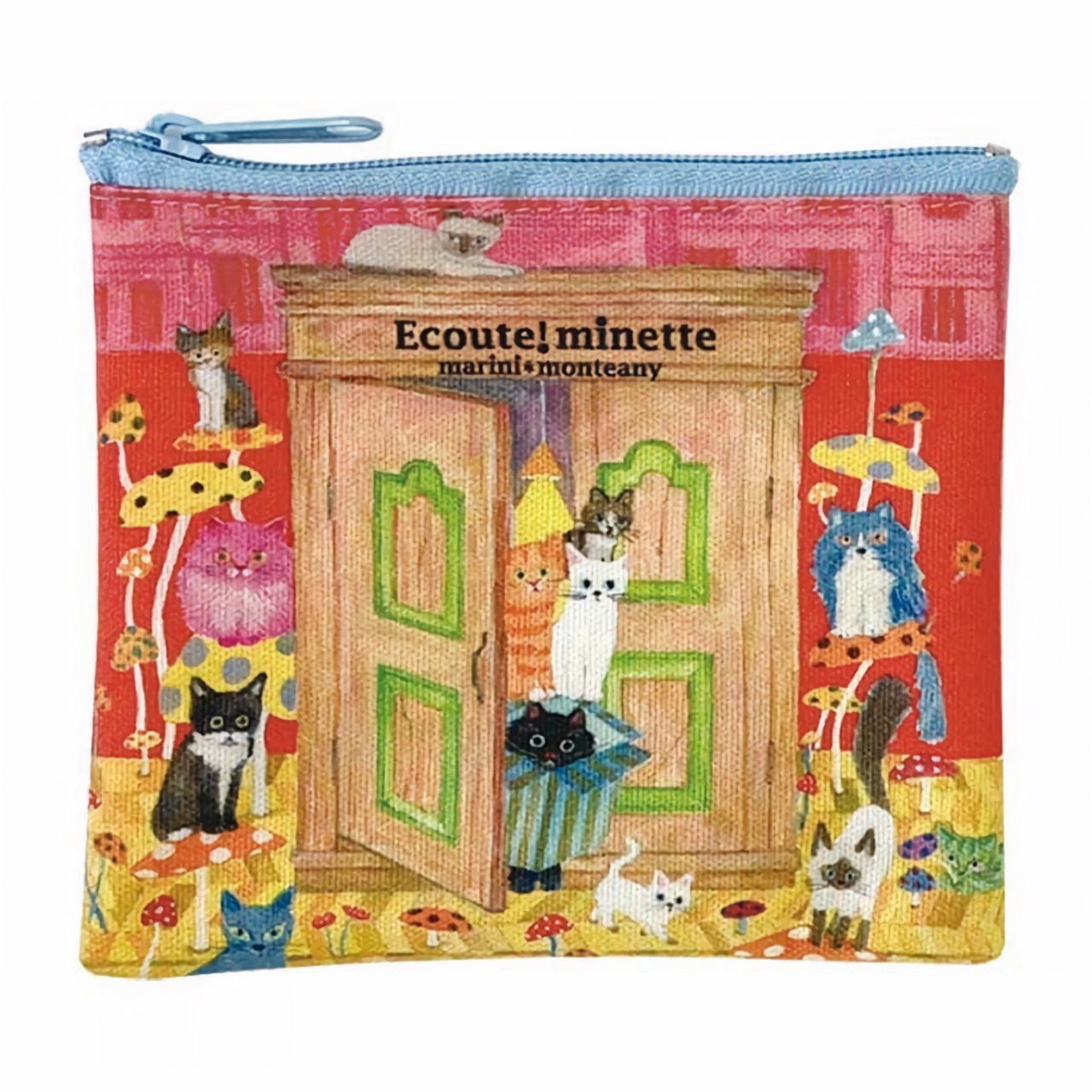 【ECOUTE!】 E.minetteミニフラットポーチ ドア 猫 ネコ キャット
