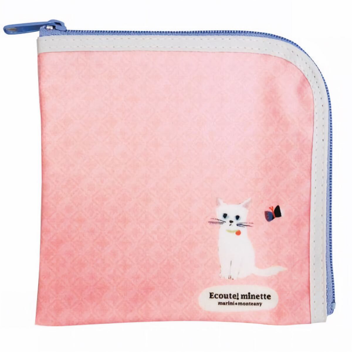 【ECOUTE!】 E.minetteL型ビニールコーティングポーチミニ ピンク 猫 ネコ キャット