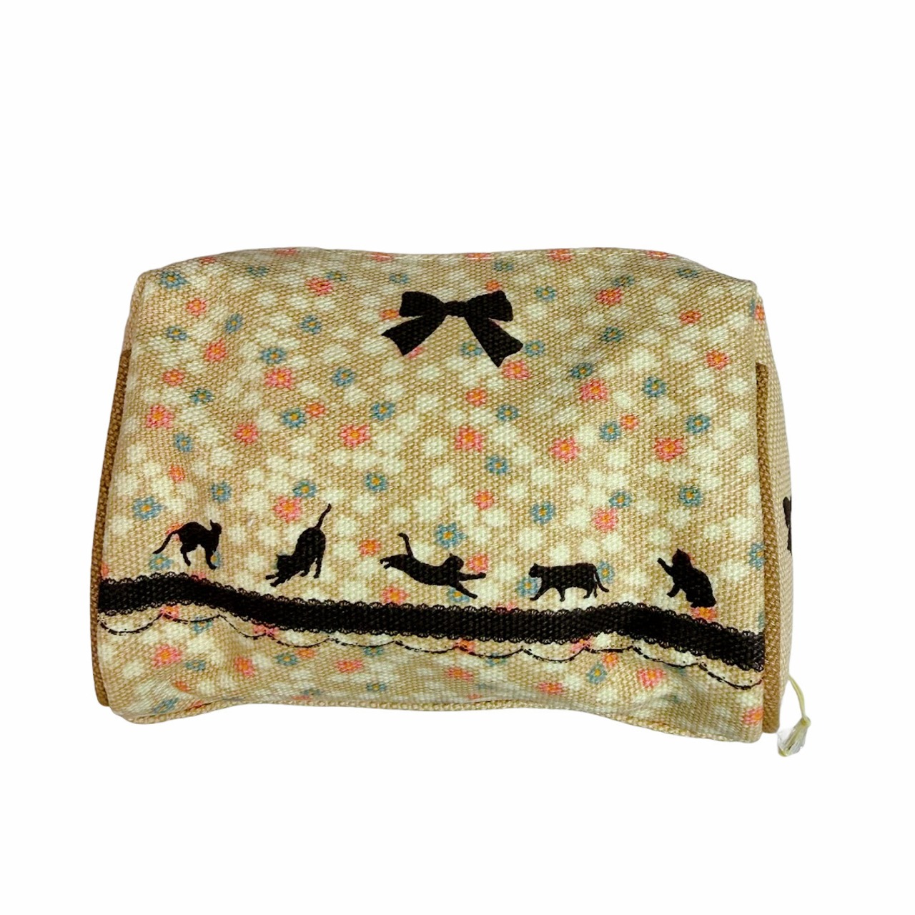 優しい風合いの綿生地に可愛いプリントをデザインしたラウンドポーチです。