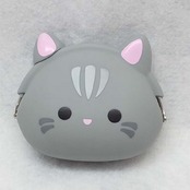 【クリアランス】猫顔がま口 灰猫 ポーチ 小銭入れ コインケース ネコ キャット