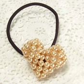 パールハートモチーフ付ヘアゴム ベージュ