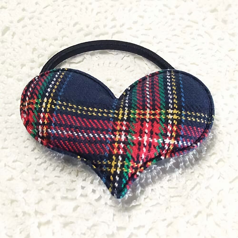 チェックが柄のハートモチーフがついたかわいいヘアゴムです。