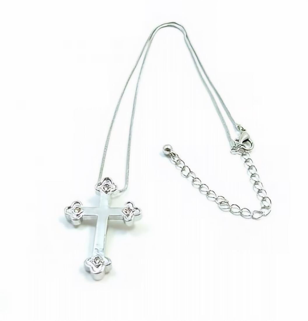 キラリと輝くラインストーンが施された、上品なクルスペンダントです。