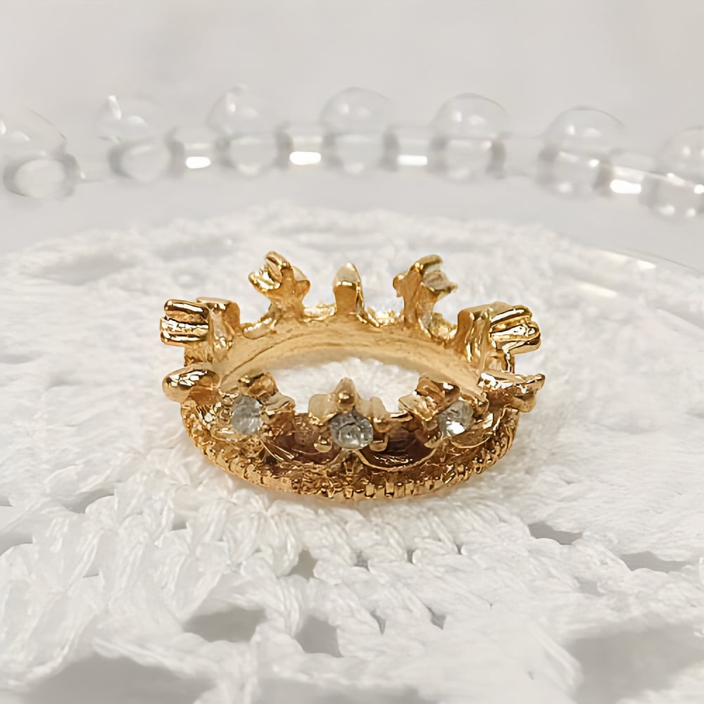 キラキラと輝くストーンがあしらわれた、エレガントな印象のクラウンリングです。