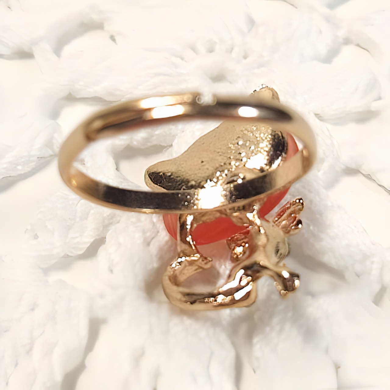キャットモチーフオープンリング オレンジレッド 指輪 ネコ 猫