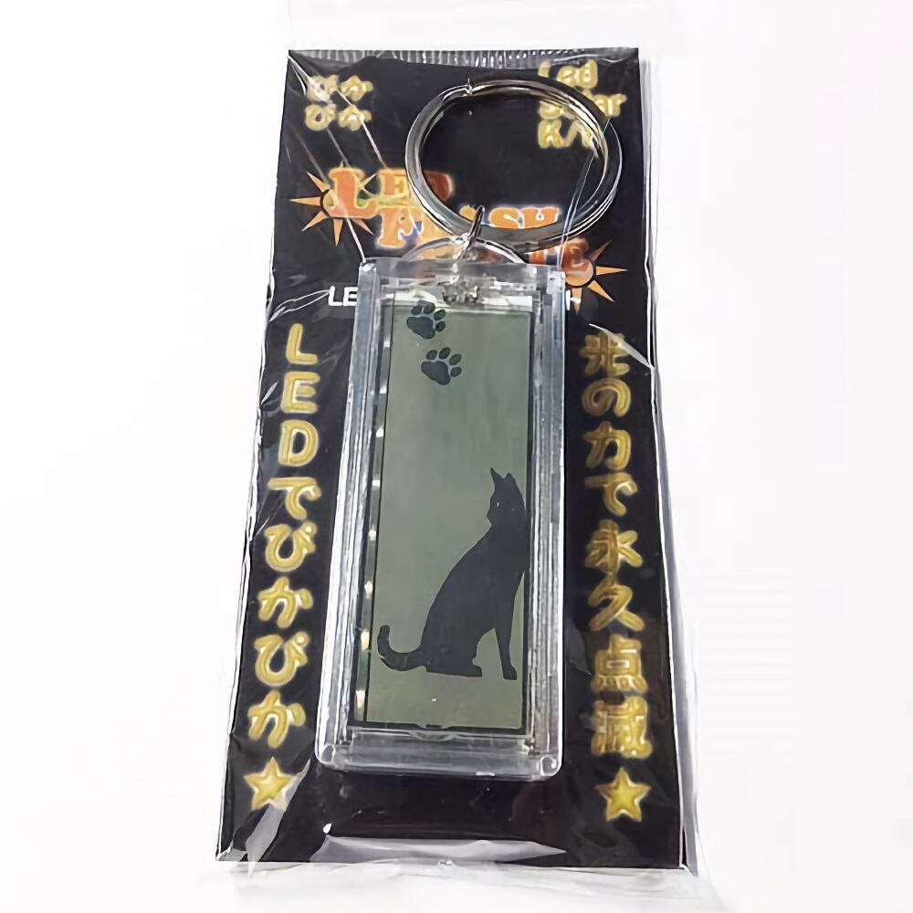 かわいい猫のシルエットがチカチカ点滅するキーホルダーです。