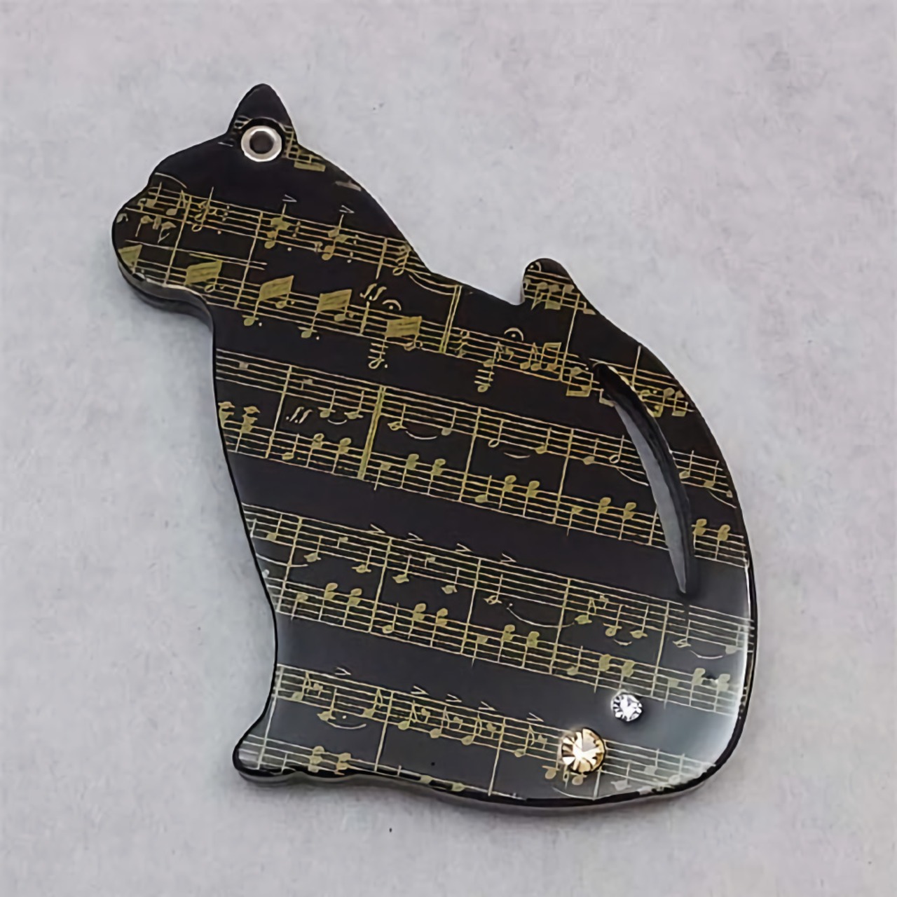 アクリル製 ミュージックキャットミラー ブラック 鏡 猫 ネコ コンパクトミラー