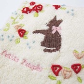 手刺しゅうタオル バラと子猫 オフホワイト ハンカチ ハンドタオル ネコ キャット