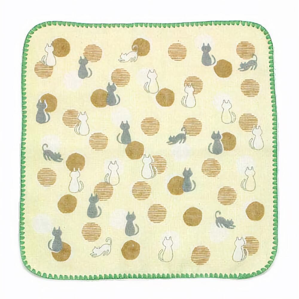 シェ・モワシリーズ 猫プリント柄 ガーゼハンドタオル ネコ キャット