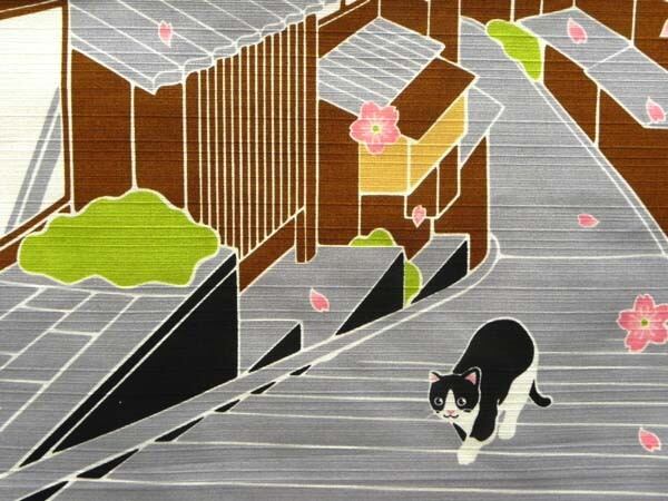 しっかりした綿生地に四季折々の景色と猫の「たま」が描かれています。