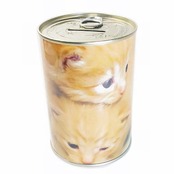 かわいい猫画像をプリントした貯金箱です。