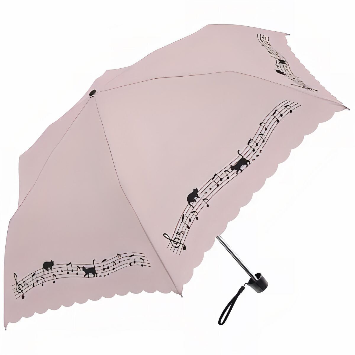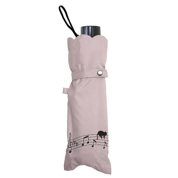 婦人用晴雨兼用折りたたみ傘 50cm 音符と猫 ピンク ミニ傘 ネコ キャット 猫