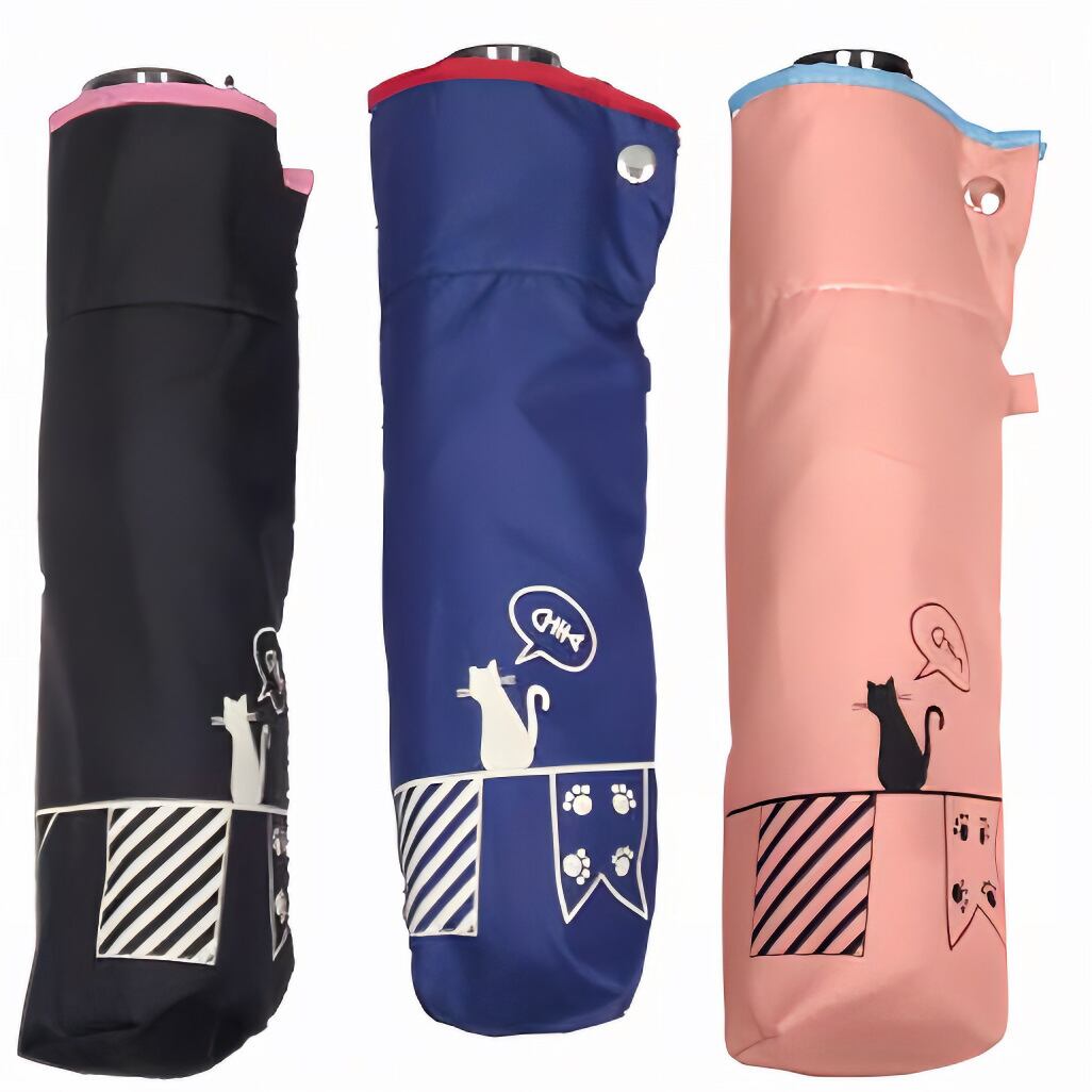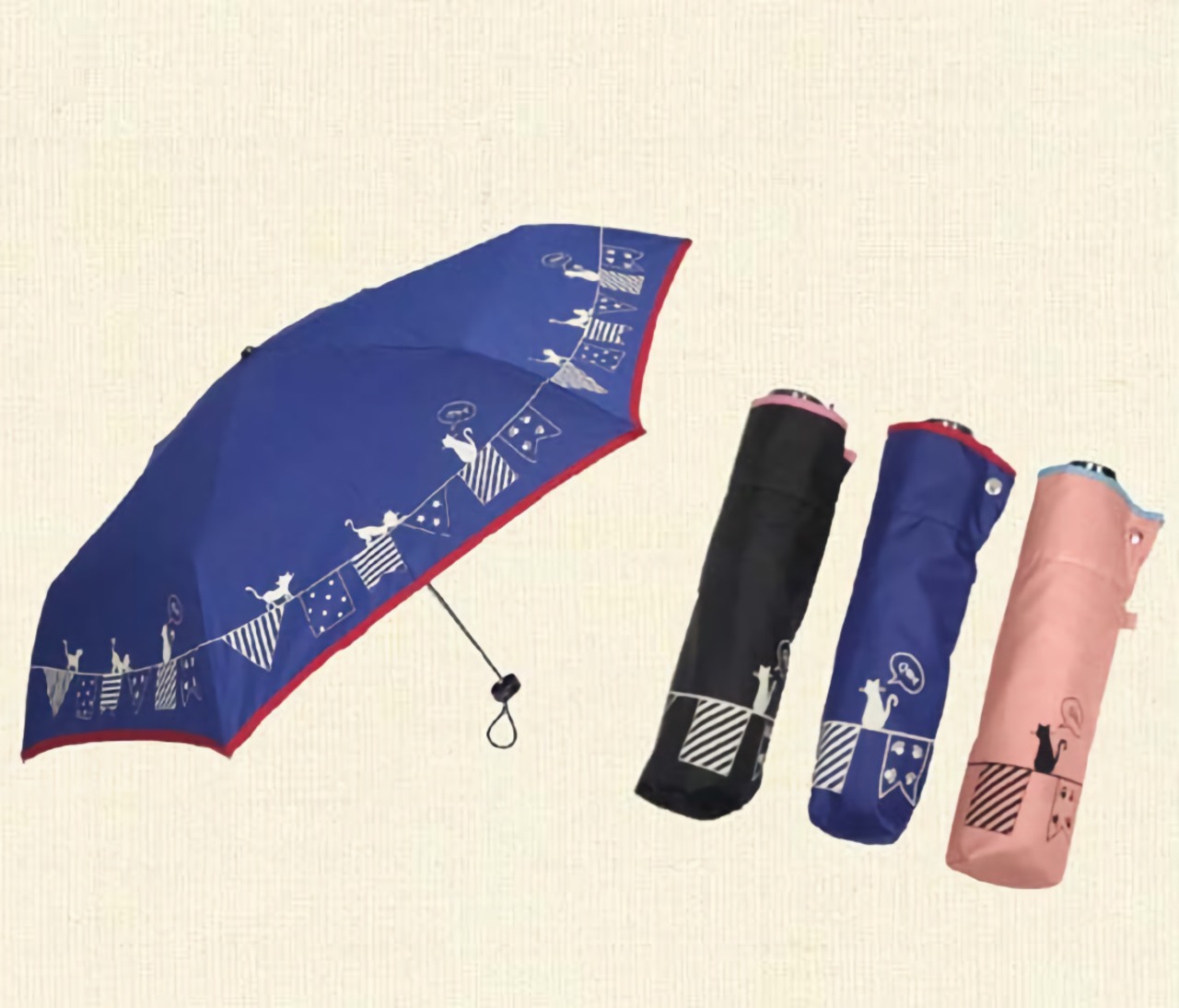 婦人用折りたたみ傘 フラッグ&キャット 雨傘 ミニ傘 ネコ キャット