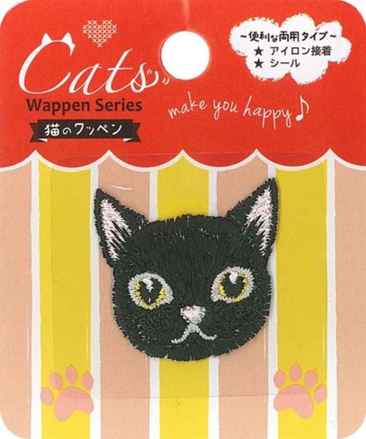猫のワッペン クロネコ シール・アイロン接着 両用 キャット