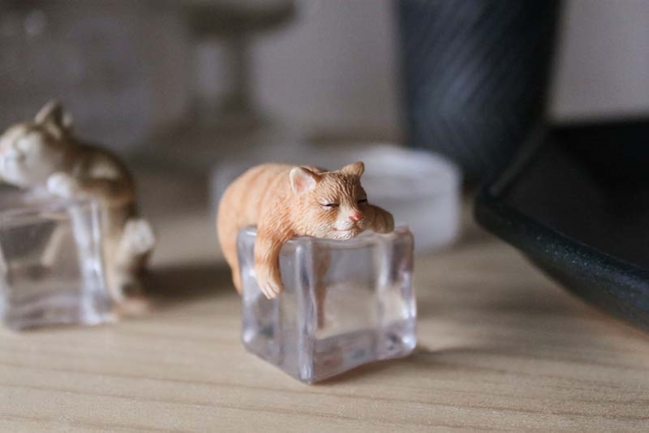 氷にしがみついてひんやりぐてっとしている愛らしい猫ちゃんです。