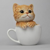 ティーカップの中にちょこんと収まった、可愛いネコの置物です。