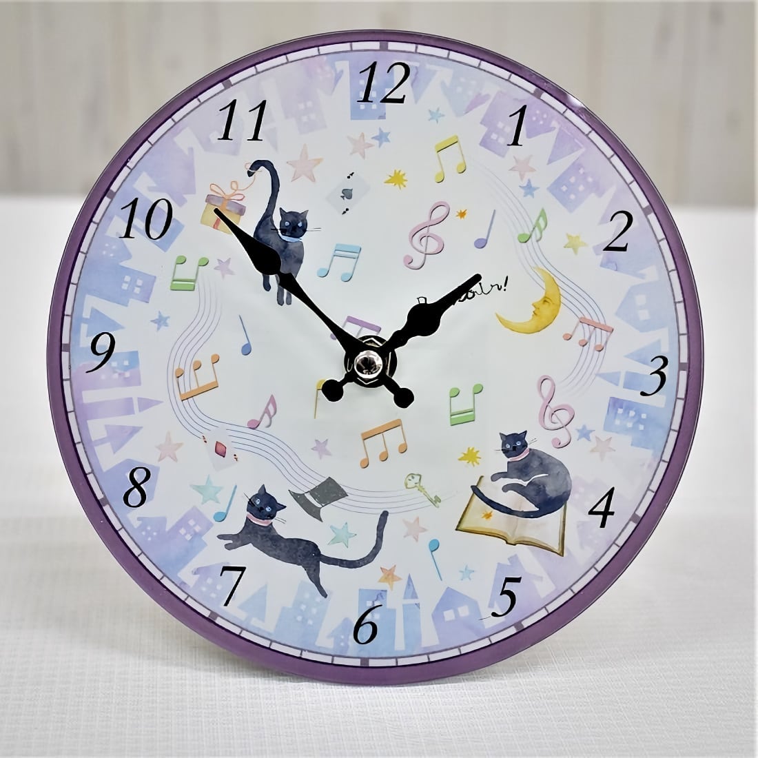 ウォールクロック 置き型 掛け型兼用 8090072 ミュージック柄 猫 ネコ キャット