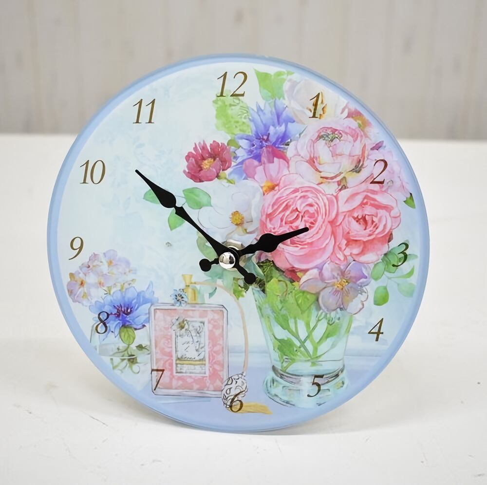ウォールクロック 置き型 掛け型兼用 90068 ローズ柄 薔薇 バラ