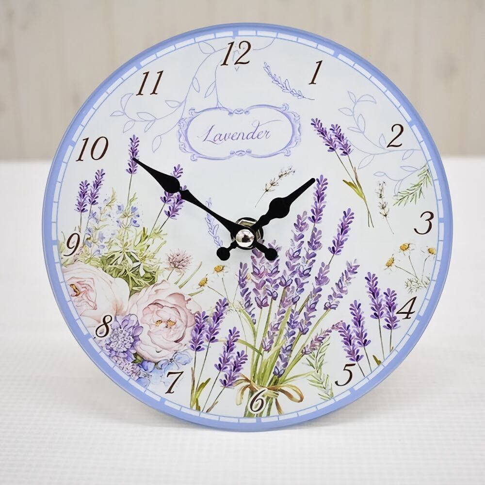 ウォールクロック 置き型 掛け型兼用 90070 ラベンダー&ローズ柄 薔薇 バラ