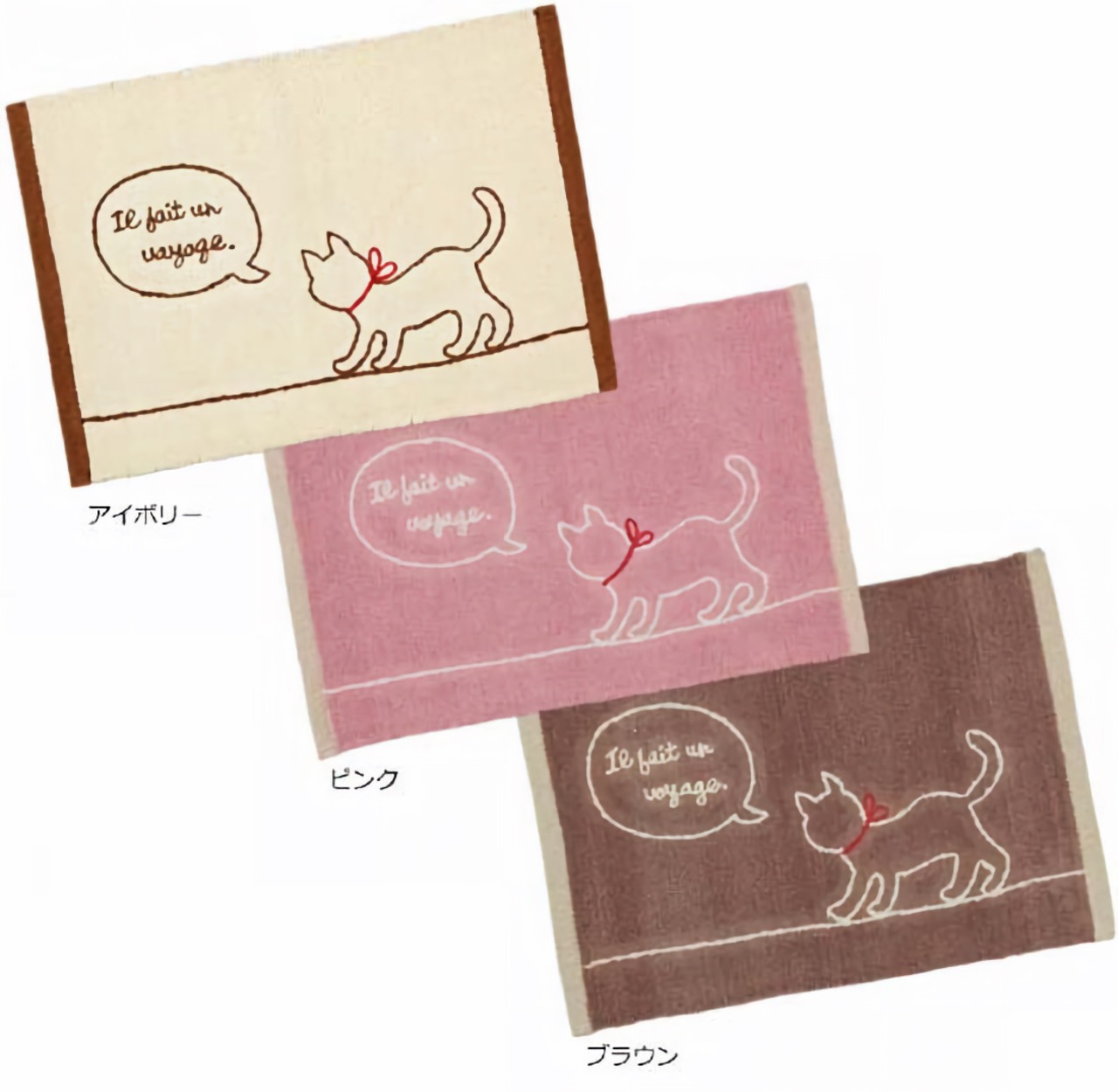 おそろいの赤いリボンでおめかしした親子ネコがマットの上をトコトコ行進♪