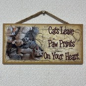 【クリアランス】難あり アメリカ直輸入 木製ドアプレート Cats Leave Paw Prints on Your Heart 猫 キャット ネコ