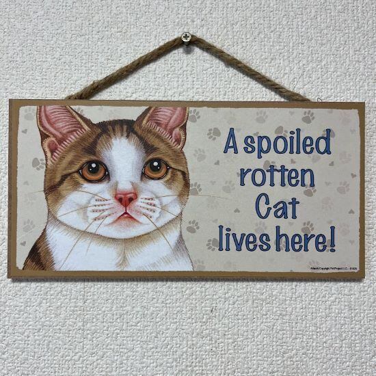 アメリカ直輸入 木製ドアプレート 茶白猫 キャット ネコ