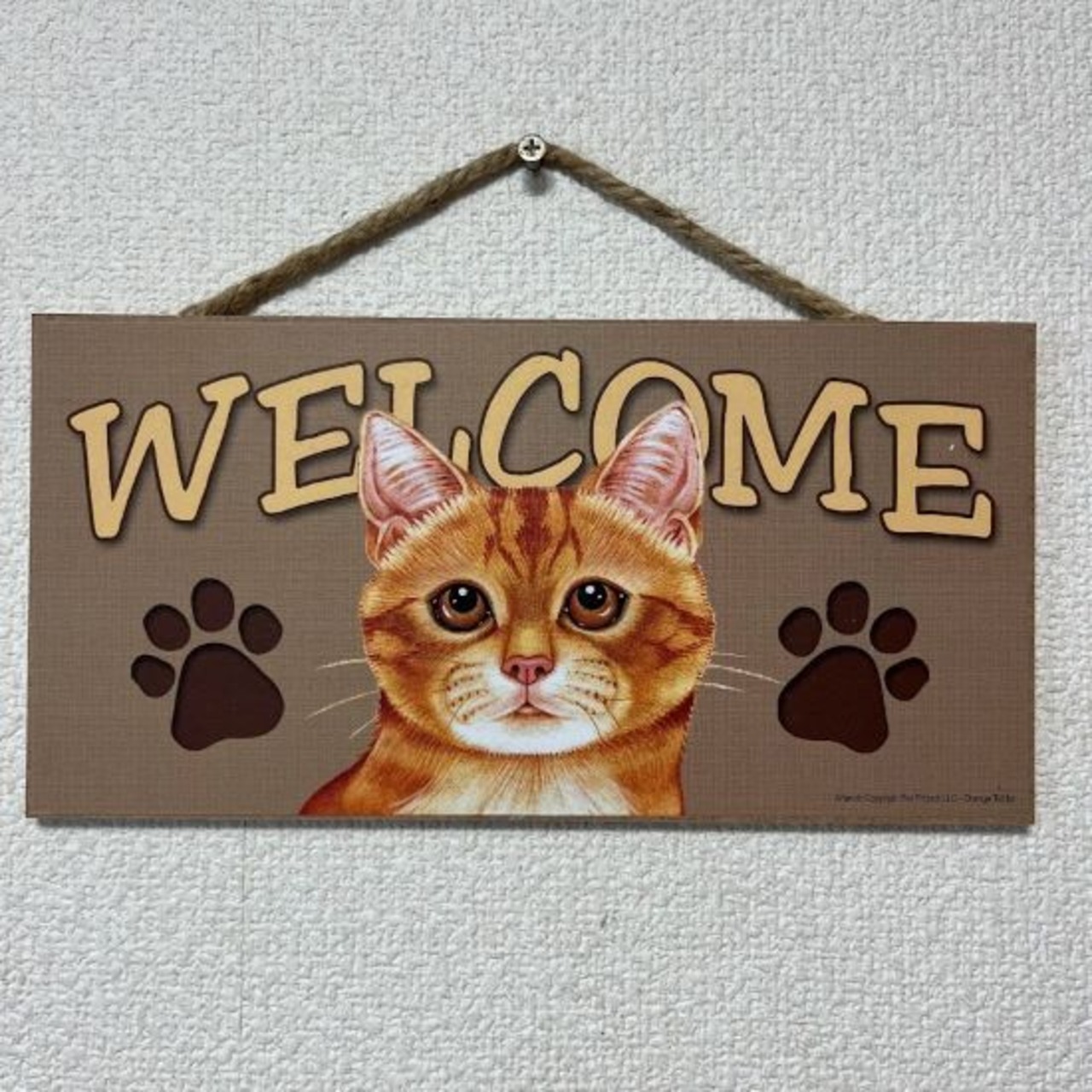 アメリカ直輸入 木製ウェルカムプレート 茶トラ 猫 キャット ネコ