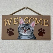 アメリカ直輸入 木製ウェルカムプレート サバトラ 猫 キャット ネコ