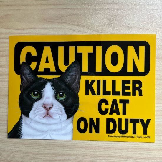 アメリカ直輸入 CAUTION KILLER CAT ON DUTY マグネットサイン ハチワレ 猫 キャット ネコ