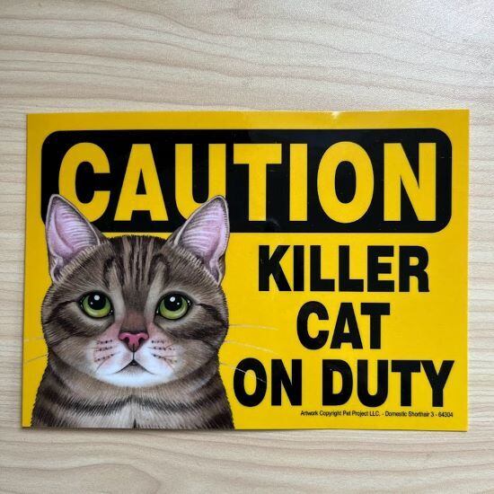 アメリカ直輸入 CAUTION KILLER CAT ON DUTY マグネットサイン キジトラ 猫 キャット ネコ