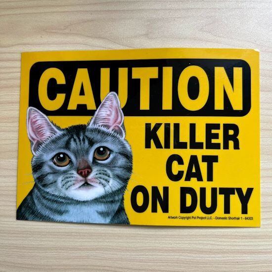 アメリカ直輸入 CAUTION KILLER CAT ON DUTY マグネットサイン サバトラ 猫 キャット ネコ