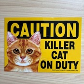 アメリカ直輸入 CAUTION KILLER CAT ON DUTY マグネットサイン 茶トラ 猫 キャット ネコ