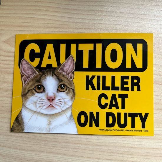アメリカ直輸入 CAUTION KILLER CAT ON DUTY マグネットサイン 茶白猫 キャット ネコ