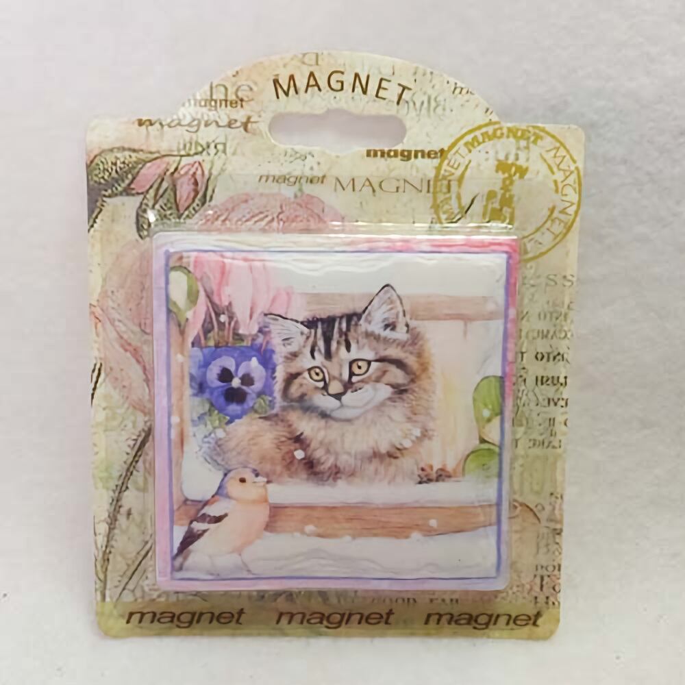 猫のスクエアマグネットプレートD柄 ネコ キャット
