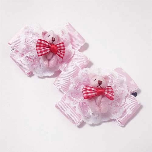 ハンドメイド ピンククマさんのパッチン留め2個 ベアー