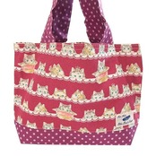 ハンドメイド 猫&水玉柄トートバッグ H ネコ キャット ドット